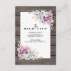 Country chic bröllopsmottagning kvällsinbjudningar med en rustik träladdabakgrund, en sukkulent hörndisplay och en bröllopps textmall.