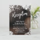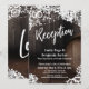 Bakgrunden på detta kort är täckt av en bild som inkluderar kanten på en träfat mot en mörk rustik brun vägg. Perfekt för din whisky-, vin-, bryggeri-, vingårds- eller annan rustikt tematiskt bröllopsfirande. Denna bakgrundsbild var draperad i grafik som föreställer strängar av gnistrande ljus, vita akvarellblommiga sprayningar och spetsaccentuer. Med hjälp av ett modernt handskriftskrift-teckensnitt skapade jag en enkel typografisk bild som läser "Reception". Dina personliga detaljer läggs enkelt till via mallfälten. Alla lager är upplåsta för att ge dig så mycket designkontroll som du behöver, om du vill flytta om några element, ändra huvudtextens teckensnitt eller på annat sätt göra detta till din egen. Du kan till och med ta bort eventuell tillagd grafik om du föredrar mindre utsmyckning som överlagrar bakgrunden