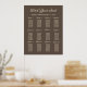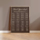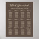Brun sittplatsplan för bröllop poster designad för ett bröllop med 12 bord. Kontakta mig om du behöver hjälp med dina anpassningar eller förfrågningar om olika antal bord eller gäster. Bakgrunden färg i detta tecken kan också ändras för att matcha ditt eget bröllop färger.