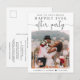 Eleganten sparar vykortet för ett mottagningsdatum eller party efter ditt val eller lilla bröllop. På framsidan finns fotot på bröllopsdagen och "Spara datum för vår lyckligtvis allt efter Party" i en blandning av enkel typografi och ett söt skript med dekorationer. Lägg till ditt första namn- och mottagningsdatum. På motsatt sida kan du anpassa ditt meddelande mer i detalj, lägga till webbplatsen adress för bröllop för att skapa en QR-kod för gäster som ska söka efter mer information och lägga till namn i ett namnteckning skript.