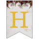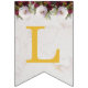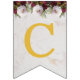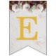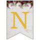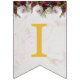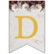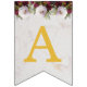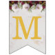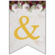 En blombanderett banner som passar till en bröllop, med de anpassningsbara namnen på bruden och brudgummen, förenade med &. Det finns 16 flaggor, tillräckligt för ett namn med 7 bokstäver och ett med 8 bokstäver. Standardnamnen är "Danielle & Michael".