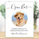 Öppen bar! Enkel men elegant kalligrafi, denna bröllopsbarskylt har Öppen bar i elegant kalligrafi och drinkarna är på oss, baksmällan är på dig! . Anpassa denna eleganta brölloppsskylt med ditt favoritfoto på hund, hundfoto, förlovnings- eller parfoto och namn! COPYRIGHT © 2020 Judy Burrows, Black Dog Art - Alla rättigheter förbehållna. Bröllopsöppen Bar Med Hundfoto - Drinken På Oss Affisch