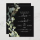 Budget eukalyptus grönska suckulent botanisk akvarell vår bröllopsinbjudan på svart bakgrund - inkluderar vacker och elegant skript typografi med moderna botaniska blad och grönska för den speciella bröllopsfirandet.