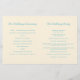 Kontur teckning i kräm och blått av en stjärt/havsabborre, med ljusvågsvirvel, vacker blå grönt och sandig kräm i färg-bröllopsprogram. Fashionable modern strand stil bröllop är en del av havsstjärnan bröllop stationär station. Söt pastellskuggor blått och akvblått på sandkrämbakgrund. Redigera det här bröllopsprogrammet med ditt eget namn, data, ceremonins ordalydelse, bröllopsfestens assistenter och tack. Ett enkelt program för elegant ersätter bara exempeltexten med bröllop-informationen och delar upp program till hälften vid leverans. Ett perfekt bröllopsprogram för en strand, ett kusthav som inspirerats eller ett havs-destinationsbröllop. Unik teckning och design av Sarah Trett.