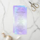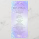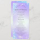 Kortet för bröllopsprogram av lila och blått stjärnor är två sidor med ceremonier på framsidan och bröllopsfesten på baksidan.