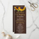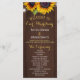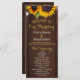 Mall för ceremonin i elegant, bröllop, med två vackra solblommor av gult och en faux guld och vit kalligrafiklammer av modern chic på en mörk, brunt lingträ som bakgrund.++++++++++++/-anpassa den med dina uppgifter! Om du vill göra fler ändringar markerar du alternativet ANPASSA YTTERLIGARE. ++++++++ Lämpligt för trädgårdsodling land | Sommar- eller hösthönsfall | bröllop utanför hemmet. ++++++++++ Om du behöver hjälp med att ändra designen kontaktar du mig!