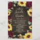 Konstruktionen har vattenfärgat djup burgundisk röd ros, solblommor, eukalyptus och annat grönt inslag över en baksida av rostfritt barrträ. Obs! Du kan radera all text, lägga till egen text och så mycket mer under funktionen för anpassning.