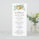 En enkel design med vattenfärgade solblommor och eukalyptus grey med vit ros. Du kan anpassa texten och färg på det här bröllopsprogrammet.