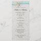 Programkortet Aqua Ribbon, snöre och Starfish grått vintage Strasbröllop är två sidor med ceremonier på framsidan och bröllopsfesten på baksidan.