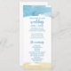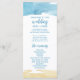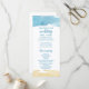 Det här bröllopsprogrammet är perfekt för ett badbröllop. Den abstrakta designen har gult och blå vattenfärg struktur som är placerad för att ta ut havsviber från havet. Ta med namn i bruden och trimmen, datum och plats för bröllop, tack, serviceordning, brudens sida och ett minnesmärke "i kärleksfullt minne" som tillval.