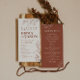 Boho blommigt bröllopsprogram, dubbla-sidig. Programkortets främsta färg är beige, med blommigt av terracotta och en kombination av boho-teckensnitt.