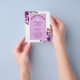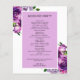 Bröllopsprogrammet Flyer för budgetmässig Lila är en chic och ett dynamiskt val för er bröllop-ceremoni. Med fet accenter för rosa och lila blommigt ger den här flygaren en levande, romantisk energi till din speciella dag. Designad med en ren, modern utformning, detaljerar den ditt ceremoniella schema och viktiga ögonblick elegant och tydligt. För att de som tittar lägga till en popup av färg och contemporary stil ska kunna göra det, kompletterar den här programplaneringens tema både klassiskt och trendig bröllop, och skapar det som en vacker keepy för gästerna.