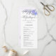 Det här programkortet i elegant bröllop är designat med ett tema för vintage vattenfärgsfärgad blommigt i mjuka skuggor av lila och grått, ge ett antikt och tidlöst utseende. I detta ceremoniprogram, som är perfekt lämpat för romantiskt och klassiskt bröllop, beskrivs varje viktig del av firande - från solo sång, sittande av föräldrar och proffs till löften, ringar, bön och uttal av giftermål. Blommigten med vattenfärg är ett vackert ramar som skapar det inte bara funktionellt, utan också som en viktig egenskap för gästerna. Det här bröllopsprogrammet kompletterar alla blommigtar som har ställts in med sin gamla utformning i stil, sina ömtåliga blommor och sin förfinade layout och ger din bröllopsdag extra charm.