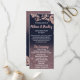 Elegant, chic och enkel, modern faux-tryckt ro guld glitter, blommor och typografi på modern marin blå bakgrund, bröllopsprogram kort. Denna klassiska och sofistikerade utformning är perfekt för det trendig och det snyggt som gifter sig. Anpassa med ditt eget meddelande på framsidan och en anpassad inledande monogram på baksidan. All fotoutskriftsdesign.