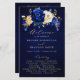 Elegant royal blått bröllopsprogram för tema guld med elegant bouquet av blommor av royal blå, marin, guld, blommor av färg i gult och blomknoppar av eukalyptus ro. Kontakta mig om du behöver hjälp med anpassning eller om du behöver någon annan produkt med den här designen.