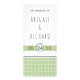 I det här BUDGETbröllopsprogrammet visas en sofistikerad sage-grönt och ett vitt geometriskt motiv kompletterat med charmerande handdragna bokstäver. Datumet i bröllop visas elegant på en banderoll med grönt, medan parets namn är kreativt skrivet i handritad stil typografi. Baksidan av programmet har en fantastisk geometrisk mönster i sidled och vit grönt, vilket ger en något elegans till den övergripande utformningen.