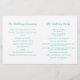 Kontur teckning i vit och tealblå grönt av en stjärt/havsabborre, med grafiska vågvirv, vacker blå grönt och skarpt vitt havsyta färg-bröllopsprogram. Fashionable modern strand stil bröllop är en del av havsstjärnan bröllop stationär station. Söt pastellskuggor teal aqua-grönt på en vit bakgrund. Redigera det här bröllopsprogrammet med ditt eget namn, data, ceremonins ordalydelse, bröllopsfestens assistenter och tack. Ett enkelt program för elegant ersätter bara exempeltexten med bröllop-informationen och delar upp program till hälften vid leverans. Ett perfekt bröllopsprogram för en strand, ett kusthav som inspirerats eller ett havs-destinationsbröllop. Unik teckning och design av Sarah Trett.