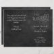 Vintage-grafik accentuerar bröllopsprogrammets retrotyp på en illustrerad ritytans bakgrund. Det ingår i Bröllop-samlingen i Chalkboard, men det kommer lätt att samordnas med alla inbjudningar från den så kallade "chalkboard". Den trycks på den lätta flygplanet pappert, så att det är lätt att halvera den.