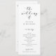 Dessa moderna bröllopsprogram har ett vackert, snabbt kalligrafiskt skript parat med ett enkelt teckensnitt. Det finns utrymme för din bröllopsfest, din familj och ett tack på baksidan av dessa bröllopsprogram.