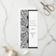 Traditionell klassisk svart- och vit snöre-filigree i vintage mönster och en bakgrund som kan anpassas från ett intervall av färg och en vit faux-satin. Ett sofistikerat söt feminin och ett modernt, minimalt men ändå elegant lyxfritt meddelande om bröllopsprogram i kyrkan i giftermål, som lätt kan personlig med bruden och brudarna namn och andra möhippa gästtexter till mallarna för att skapa ditt eget chic-program för lyxig professionell giftermål för dina särskilda evenemang och firande. Anpassa enkelt bakgrunden till färg, från ett stort antal anpassningsbar färger för att skapa ditt eget helt annorlunda utseende på denna unika vintage av contemporary, den så kallade lyxen inbjudan. Besök PERSONLIG_ BRÖLLOP STORE om du vill matcha koordinerade uppsättningar av bröllop-svit.