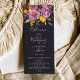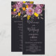 Eleganten faller vintern lila blommigt bröllopsprogram med modern kalligrafi och elegant bröllop i skript i lila, orange och gula blommor med sage grönt foliage på mörk av svart