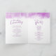Dubbla-sidig abstrakt modern lila för rosa av konst utvecklas på ett vitt bröllopsprogram. Redigera det här bröllopsprogrammet med ditt eget namn, data, ceremonin, bröllopsfestens medarbetare och tack. Ett enkelt program för elegant ersätter bara exempeltexten med bröllop-informationen. Moderna ceremoniprogram i bröllop. Ursprunglig abstrakt tvättar målning och design av Sarah Trett. www.sarahtrett.com för www.mylittleedenweddings.com