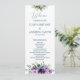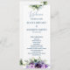 Grönt- och lila Blommigt-kort - en harmonisk blandning av naturinspirerad skönhet och elegant. Blommönstret för lila och grönt som är inställt mot en pristinvit bakgrund skapar en synligt fängslande estetik och anger perfektens ton för firande i bröllop. Tillägget av marin blå text tillför en smula sofistikering, vilket garanterar tydlighet och stil när du presenterar dina ceremoniuppgifter. Det här programkortet fungerar inte bara som en guide till dina speciella dagars händelser utan också som en omhuldad keepé för dina gäster. Öka din bröllop-upplevelse med detta vackert utformade kort som fångar romantik och förfining.