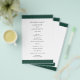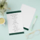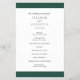 Modern juvelton framträder som gröntens budgetplan för bröllopsprogrammet med ett fet band över och över grund. Namn finns i ett klassiskt serif-teckensnitt och dina uppgifter finns i en kombination av ett modernt sans serif-teckensnitt och ett elegant-skript. Baksidan har ett band längs grund tillsammans med ditt monogram. Denna enkla och minimala utformning med traditionell formulering är underbar för ett formellt bröllop.