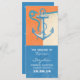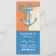 Gamla ankarnautiska bröllopsprogram för tropiska bröllop på stranden. Huvudprogram för bröllop på strand färg: orange och blått