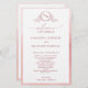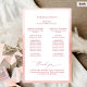 Elegant Bröllopsprogram för Rosa med vackra handdragna monogram och ram i vattenfärg i rosa och guld i ro. Modern handskriven calligraphy inslag. Du kan göra textändringar och -justeringar genom att välja "Redigera med verktyg i designläge". Framåt med ceremonin i bröllop, tillbaka med bröllopsfest namn och tack för ert budskap till gästerna. OBS! Den här designen finns i två alternativ av papper typ, markera den pappra tjocklek du föredrar när du placerar din beställning! En del av vår " Rosa Watercolor, Botanical Monogram Bröllop"-samling med en mängd olika samordningsprodukter tillgängliga.