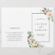 Det här bröllopsprogrammet har färgade vattenfärgblommor i rosa-, vit- och grönt blad med rektangulärt ram. Om du vill ha en mer avancerad anpassning av den här designen klickar du på länken Anpassa ytterligare. Matchande objekt är också tillgängliga. Obs! Ni måste lägga dem på halva vägen när de kommer.