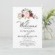 Bröllopsprogram med akvarellmotiv i rosa och burgunder