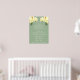 Bröllopsskylt med en vintage-illustration av gula blommor och grönska på en salvia grön bakgrund.