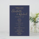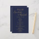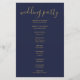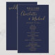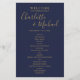 Ett elegant bröllopsprogram i guld och marinblått med namn i signaturstil. Designad av Thisisnotme©