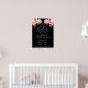Bröllopsskylt med en vintage-illustration av rosa blommor och grönska på en klassisk svart bakgrund.