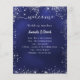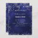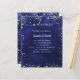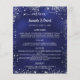 Ett klassiskt bröllopsprogram och meny. En blå bakgrund. Den blå färg är ojämn. Vit text. Dekorerad med faux silver glitter, gnistor. Anpassa och lägg till namn, datum och både program och meny. 1 lakan = 1 meny utskriven kant till kant.