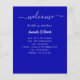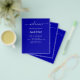 Observera att det här programmet/den här menyn är pappert och mycket tunt. Om du vill ha tjockare program/menyer (samma design) kan du besöka vår butik. Ett klassiskt bröllopsprogram och meny. Royalets blå bakgrund. Vit text. Anpassa och lägg till namn, datum och både program och meny.