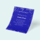 Observera att det här programmet och den här menyn är pappra och mycket tunna. Om du vill ha tjockare program/menyer (samma design) kan du besöka vår butik. Ett klassiskt bröllopsprogram och meny. Royalets blå bakgrund. Vit text. Dekorerad med faux silver glitter, gnistor. Anpassa och lägg till namn, datum och både program och meny.