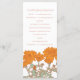 bröllopsprogram-rackkort för orange-krysanthemum program