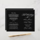 Elegantens svartvita ceremoniprogram för bröllop innehåller ett blomstrande monogram med kalligrafi för vintage och designeffekter för rulla. Anpassa anpassningsbarna till brudens sida, ceremoniinformation och tack för ditt budskap. Obs! Dessa pappra textviktsprogram anländer jämnt och kräver vikning för att samlas ihop.