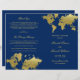 Elegant vintage resor inspirerade bröllop-ceremoniprogram har världskartan gräns med ett metallistiskt utseende av champagne guld shimmer. Anpassa anpassningsbarna till brudens sida, ceremoniinformation och tack för ditt budskap. Obs! Dessa pappra textviktsprogram anländer jämnt och kräver vikning för att samlas ihop. Systemet med marinblått och faux guld foil färg.