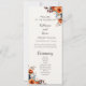 Det här är en elegant, marinblått och bränt blommigt bröllop-ceremonieprogram med blommor i blått och orange med ljusa orangars bakgrundsdesign. Det är perfekt för ett sommarbröllop eller ett trädgårdsbröllop firande.