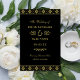 Elegant och glamorösa konsthändeln bröllop, ceremonin i lakan inspirerad av vintage Gatsby stil och 20-talet. Svart bakgrund färg med guld-design. Anpassa anpassningsbarna till brudens sida, ceremoniinformation och tack för ditt budskap. Obs! Dessa pappra textviktsprogram anländer jämnt och kräver vikning för att samlas ihop.