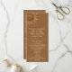 En handskisserad solrosa, på en illustrerad bakgrund av en sammanbrott, accentuerar bröllopsprogrammet för fallbröllopet.
