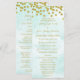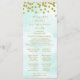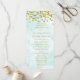 Personligt bröllp-programmet i ljusturkos blåfärgade mönster med guld konetti. Observera att guld endast har fotoeffekt.
