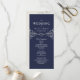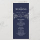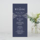 Elegant modern minimalistisk chic enkel kalligrafi navy blue bröllopsprogram med romantiskt silver-rep hjärta och gyld blommigt snöre.