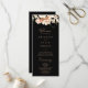 Detta svarta formella bröllopsprogram för blommigt av royal är perfekt för ett modernt bröllop. Utformningen har vattenfärgsblommor, och vita eleganter med löv för grönt.