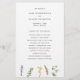 Boho-bröllopsprogrammet flyger med vattenfärgsmålade vilda blommor i en enkel layout. Dessa Bröllopsprogram för botanisk blommigt är underbara för ett nordligt vår eller sommar bröllop och trycks på lakan papper för ett budgetvänligt alternativ.