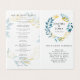 Bröllopsprogrammet Blue Botanical Folded Ceremony Kort
