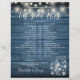 Den här snyggten kan Rustic bröllop schemaläggningstidslinje med söt string ljus och Mason burk vara personlig med dina bröllop-detaljer i chic, vit text på en blå träpanelbakgrund. Designad av Thisisnotme©